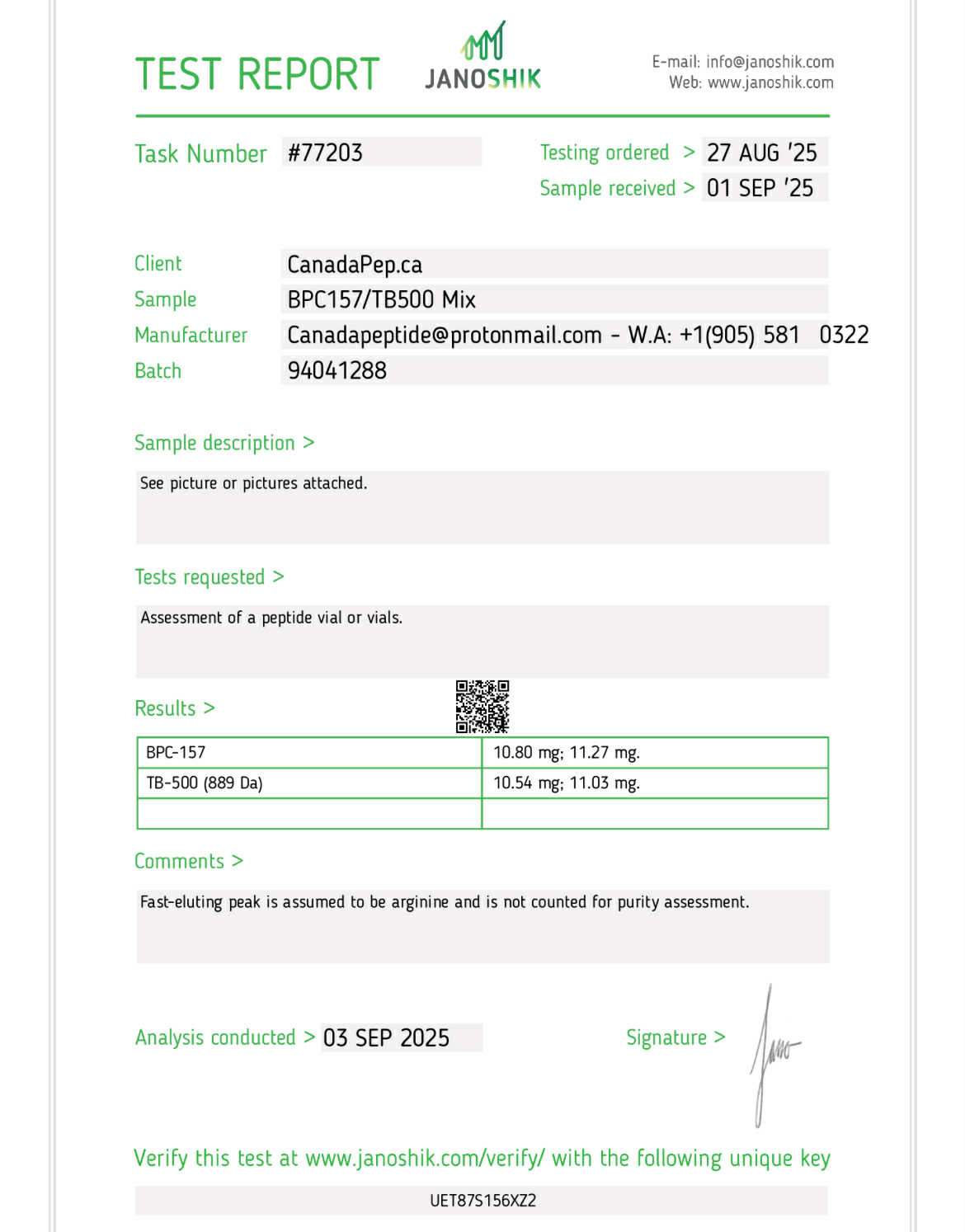 Disclaimer: TB-500 and BPC-157 are experimental research chemicals and are not approved for human consumption or medical use. They are intended strictly for laboratory research purposes only. Any unauthorized use in humans or animals for therapeutic, diagnostic, or recreational purposes is strictly prohibited. The purchaser assumes full responsibility for proper handling and compliance with all applicable laws and regulations.